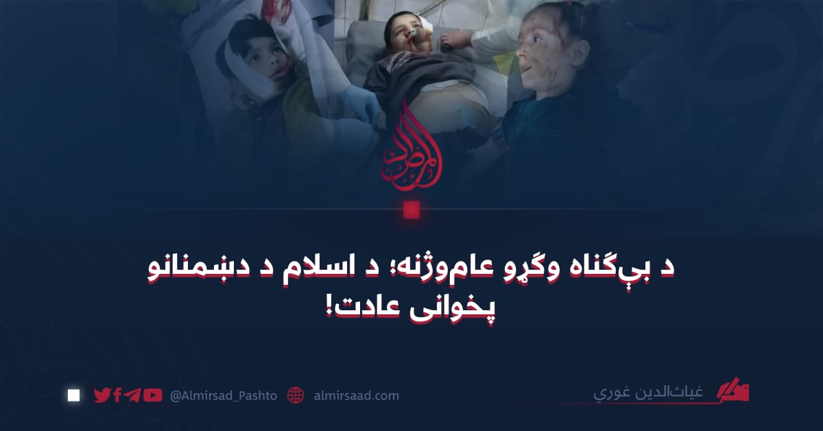 د اسلامي نظام سره د دښمنۍ ګناه او سزا به پر خپل ځای پرېږدو؛ خو دا ډول بریدونه چې پرته له دې چې د پوځي او ملکي اهدافو تر منځ توپیر وشي، نه یوازې بشري اصول تر پښو لاندې کوي، بلکې د بېدفاعه خلکو په منځ کې ژور درد، کړاو او غم زېږوي.