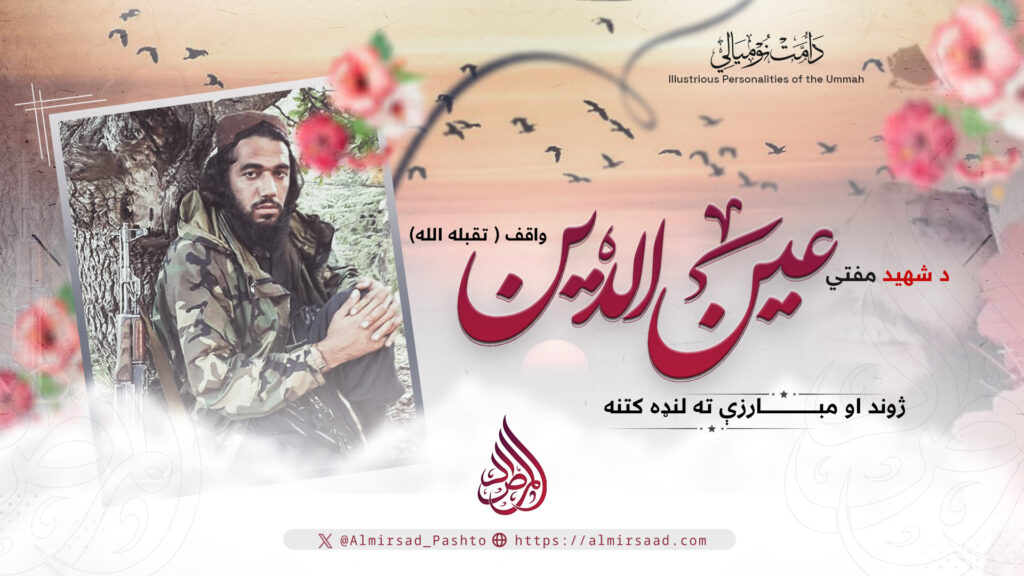 شهيد مفتی عین الدین «واقف» تقبله الله، تقواداره، متدين، زړور، او نه ستړی کېدونکی مجاهد وو، د ده ژوند له سختو دردونو او کړاوونو څخه ډک و. د جهاد او مبارزې په دې دوه میاشتني دور کې دى له خپل کلي/کور څخه لرې مسافر وو، خپل د ځوانۍ د دورې، ژوند يې د الله تعالی په لاره کې جهاد ته وقف کړی و، کله چې شهيد شو، د ده مبارک جسد له شهادت څخه وروسته څلور شپې د ننګرهار په خونړیو غرونو کې پاتې و، د لوګر ولایت د سرې میاشتې لخوا له ننګرهار څخه لوګر ولایت ته انتقال شو. وروسته له څلورو شپو کورنۍ ته په داسې حال کې وسپارل شو، چې وجود یې داسې روغ رمټ و لکه نوی او تازه چې شهید شوی وي.