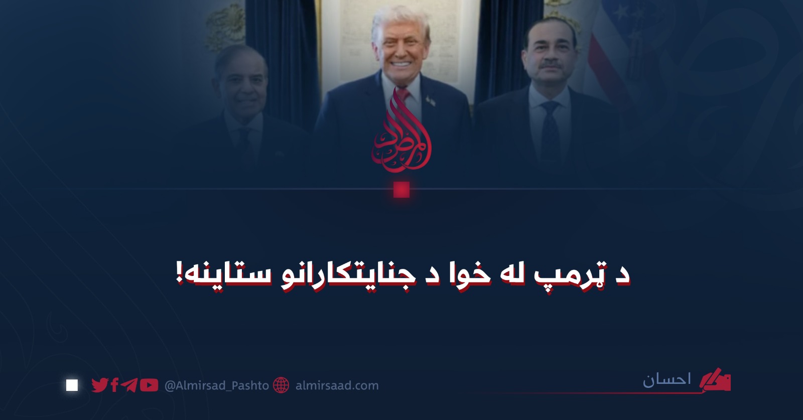د امریکا د ولسمشر، ډونالډ ټرمپ، وروستۍ څرګندونې چې په کې یې د پاکستاني پوځي قوماندانانو ستاینه کړې، یو تریخ او شرموونکی حقیقت روښانه کوي. دا سړی، چې د سیمې او منځني ختیځ په وروستیو تحولاتو کې یې کارنامه له جنایتونو، وینې تويولو او د اشغالګرو له ملاتړ څخه ډکه ده، اوس د هغو کسانو په ستاینه بوخت دی چې کلونه کېږي د افغانستان بېګناه وګړي په خپلو کورونو، روغتونونو او ښوونځیو کې شهیدانوي.