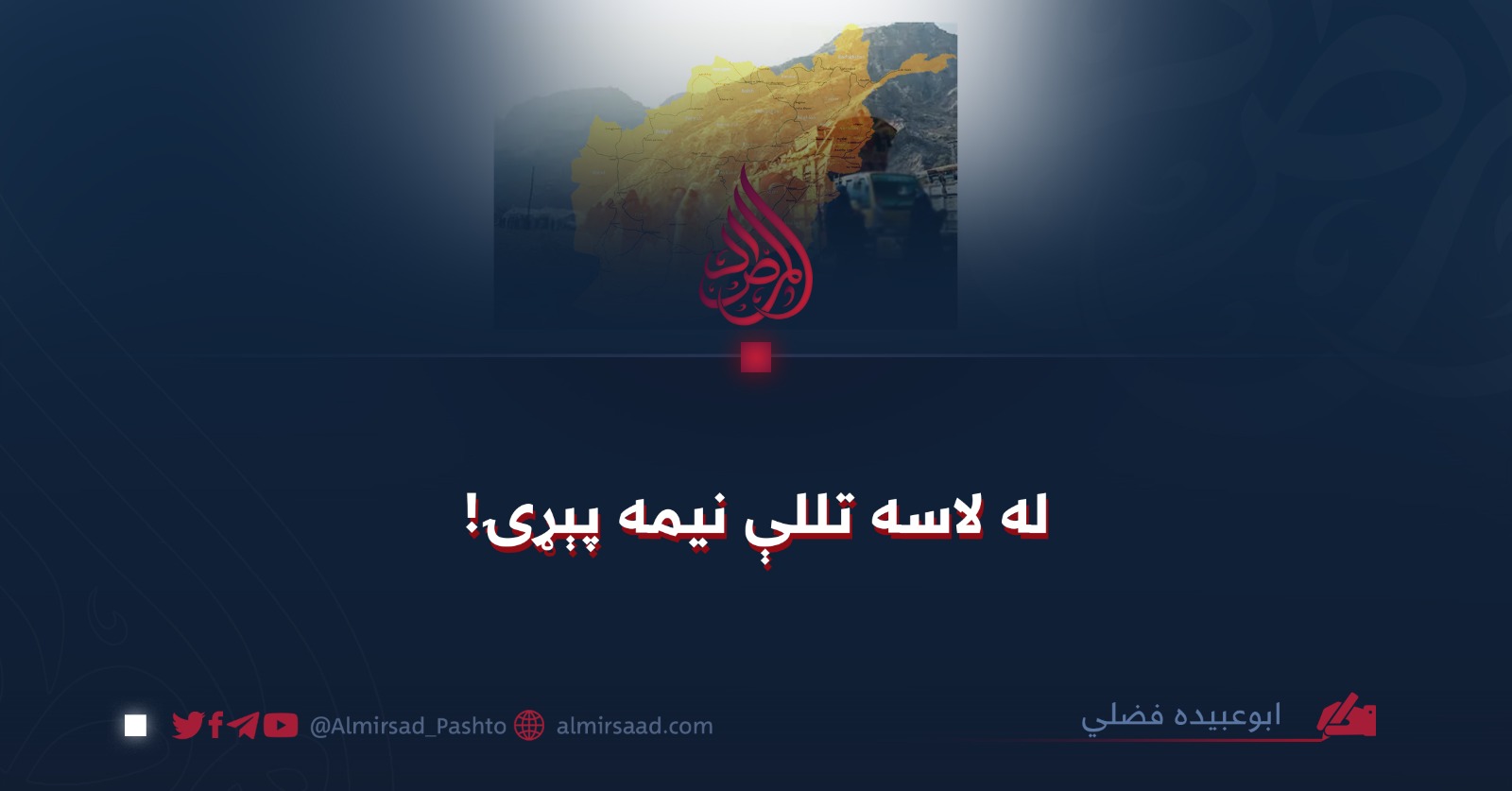 موږ افغانانو په جګړه کې د خپلو ژوندونه نیمایي برخه له لاسه ورکړه او زموږ مورنۍ خاوره د یرغلګرو له خوا ویجاړه شوه، اوس د خدای جلجلاله په فضل، د اسلامي امارت له بریا وروسته، زموږ خلکو او ځمکې بشپړ سوله او امنیت احساس کړی دی. د خدای تعالی جلجلاله په فضل، د عامه ګټو لویې پروژې لکه د قوش ټیپي بند، د کاسا زر، ټاپي او نور په کار اچول شوي او زموږ د هیوادوالو لپاره یې د کار فرصتونه رامنځته کړي دي.