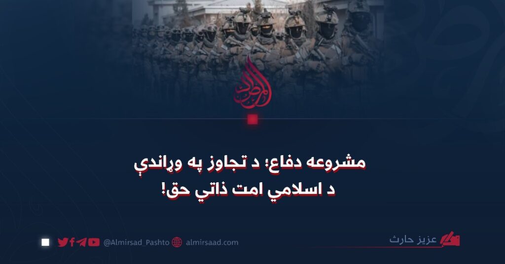 پر افغانستان د پاکستان د هوايي حریم په ښکاره تجاوز او د کابل د پایتخت په ګډون د سیمو بمبارۍ ته په پام سره، افغانستان د نړیوالو قوانینو او اسلامي موازینو له مخې، د دفاع مشروع حق لري. د نفس، عزت، ناموس، مال او ځمکې پر وړاندې د هر ډول تجاوز په مقابل کې دفاع، یوازې جرم نه، بلکې جایز او مشروع ده. دا قاعده هم په نړیوالو قوانینو او هم په اسلامي فقه کې په ورته شرایطو سره په رسمیت پیژندل شوې ده.