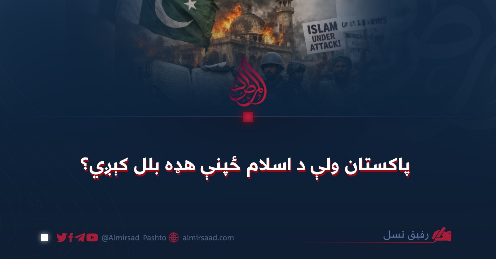 دا به تاریخ او اسلامي امت څنګه نه حس کوي، چې ځان ته د مسلمان نوم منصوبوي خو په حقیقت کې بیا مسلمانان په همدې شکل په وینو زرغونوي. نو ځکه وایو، چې پاکستان اوسنی رژیم او اداره د اسلام او مسلمانانو ځپنې هډه ده، چې تر کومه یې وس رسیږي د اسلام په نوم او نښان پوښلي مسلمانان به له دوی شر او فتنې څخه په امن نه وي.