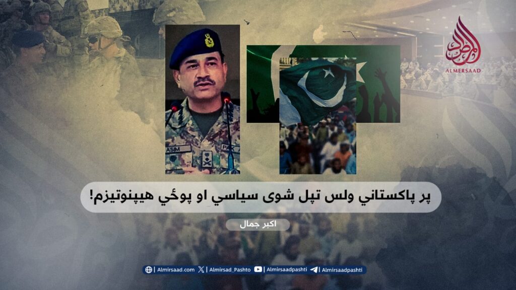 په بل عبارت، پر پاکستاني ملت دا تپل شوې چې د هغه ژوند د هماغه پاکستاني قاتل پوځ سره تړلی دی؛ یعنې هغه باید هره شېبه دا ایمان او عقیده ولري چې د ده اصلي ساتونکی همدا قاتل پوځ دی. همدا خو سیاسي او پوځي هیپنوتیزم دی؛ یعنې یو داسې ذهني نشه… چې مظلوم پاکستاني مسلمان د خپلې پوځې ظلمونه هم ویني، خو بیا هم چوپ پاتې کېږي؛ هغه ته دا سوچ نه پرېږدي چې اصلي امنیت له زورورو بنسټونو نه، بلکې له انصاف، روڼتیا او ولسي شعوره زېږي.